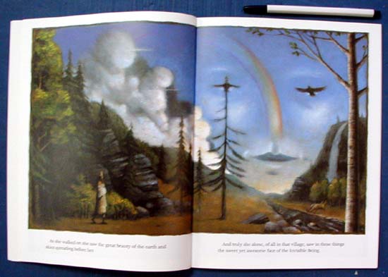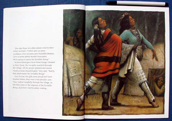 In this Algonquin Indian tale, the Rough-Face Girl is scarred from years of tending the fire for her family. She is mistreated by her sisters, who go on a journey to find and marry the Invisible Being. The Rough-Face Girl desires to meet this mysterious power and decides to embark on her own search. When she meets up with the sister of the Invisible Being, she is put through a test. After she answers all of the questions correctly, she bathes in the lake. While in the water, her scars vanish and she ends up marrying the Invisible Being. Magnificent paintings and moving prose perfectly capture the beauty of the natural world in this Native American version of Cinderella. - Debra Briatico