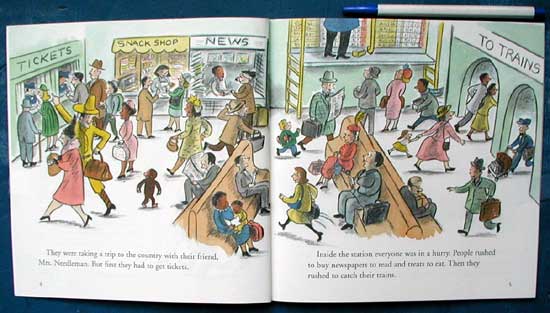 Everyone's favorite, loveable monkey is back in one of his most exciting adventures yet. In this book, Curious George takes a trip to the train station, and although he is trying to help, when he reorganizes the train locations and times, the station erupts in chaos. Once everyone in the busy train station notices this little monkey, it is too late to reverse the damage he has done. The illustrations in this book are just as amusing and detailed as they have been for years. No matter what age the readers are, they will still delight in seeing what mischief George will get himself into next. This story greatly contributes to the classic love that we all have for Curious George and his friend The Man With the Yellow Hat. 2002, Houghton Mifflin Co, - Sarah Hammond |