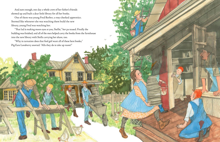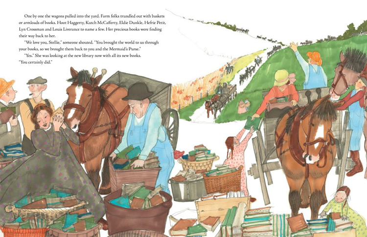 Young Stella loves books so much, her books begin to take over the farmhouse. ¡°Why, Stell, you need your own library to hold those books,¡± her pa tells her, so he and the neighbors build her one! She calls it ¡°the Mermaid¡¯s Purse,¡± since the midwife said Stella was born in one. Stella opens the Purse to her neighbors and travels around the countryside, sharing her books door-to-door. Not everyone gives them a chance at first, like grouchy Pig Ears Lonsberry. But farmer Dunkle sure changes his mind when information in a book saves his sick sheep. Eventually, everybody comes to love the Mermaid¡¯s Purse—so when a tornado destroys it, scattering Stella¡¯s precious books far and wide, the whole community rallies to help.