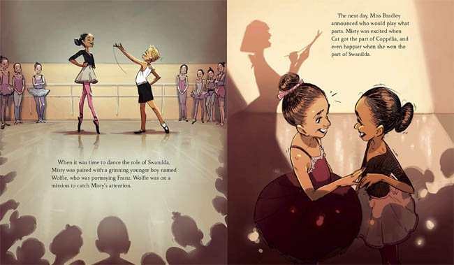 ¡°Celebrates the joy of dance with a biographical glimpse of the young Misty in her first ballet class, auditions, and preparation for a performance of Coppelia. A muted color palette in digitally painted art highlights the technique and diversity of the dancers . . . [as] the author follows her young self through the audition process for dance roles, her questioning thoughts about her own talent, working with other dancers, and the sheer thrill of performance. . . This title is the perfect biographical addition for young readers interested in dance and the arts.¡±