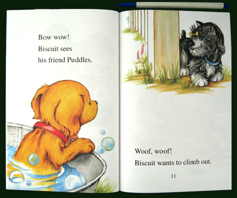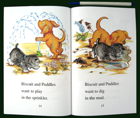 The text is brief, and the illustrations have an old-fashioned kind of sweetness in this simple tale depicting the hassles involved in getting a mischievous little dog, Biscuit, into a bath. Biscuit's owner eventually manages the job, but not without Biscuit exacting a predictably comical revenge. The vocabulary is quite basic--see, bath, roll, etc.--and there's plenty of repetition in the text to allow for reading practice. Even if there isn't much that's memorable about the story, new readers will still come away feeling they've had a successful reading experience. |