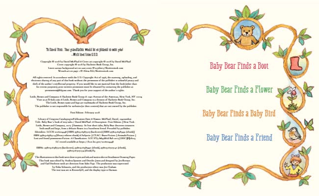 This collection of simple, short, and irresistibly sweet stories about Baby Bear finding things--and figuring out what to do with them--includes "Baby Bear Finds a Book," "Baby Bear Finds a Flower," "Baby Bear Finds a Baby Bird," and "Baby Bear Finds a Friend." Charmingly written and illustrated by celebrated artist David McPhail, the impeccably classic feel of the text and art will take readers back to Sendak's Little Bear and Lobel's Frog and Toad books.