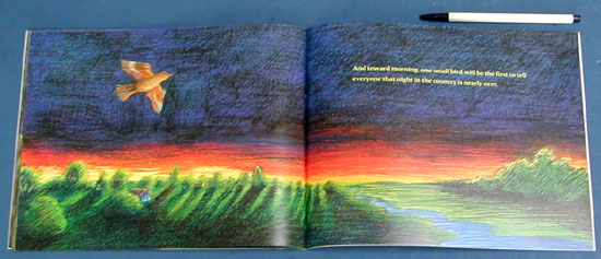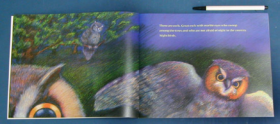 There is no night so dark, so black as night in the country. And while the people dream of daytime things, the nighttime world awakens. Owls swoop, a rabbit patters, and in the yard an apple falls -- pump! -- from the tree. Listen. Go to the window. Across the field a light glows. Who else is up so late? Who else watches and hears the sights and sounds of night in the country -- the many stirrings of silence, the many colors of the dark? Lyrical text and velvety pictures present a very different kind of nighttime: a mysterious, moving night that will lull small children to sleep.