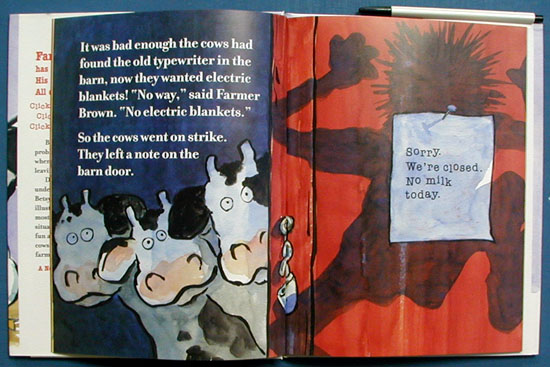Doreen Cronin's understated text and Betsy Lewin's expressive illustrations make the most of this hilarious situation. Come join the fun as a bunch of literate cows turn Farmer Brown's farm upside down.