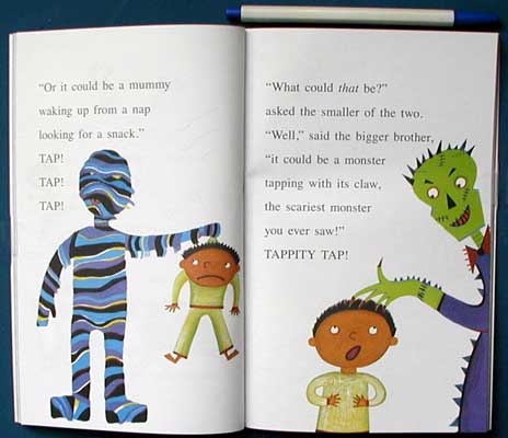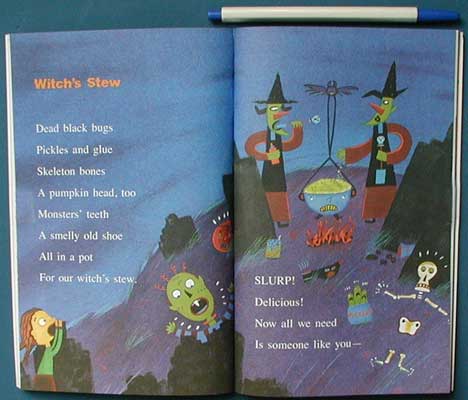 Although as it claims, this book is "not too scary," it is filled with creepy drawings and even creepier stories. It is a great collection of six short stories and poems that begins with an introduction from a spooky monster. With as much rhythm as a child's step during trick-or-treating, the text is easy to read and sounds great when read out loud. Skeletons, ghosts, witches, and mummies fill the pages in dark autumn and Halloween colors. The first story, "105 Windy Street" is about two girls who go out to collect their candy and make one last stop at the said address. When the girls cry "trick or treat" the spooky occupants, a ghost and a witch, answer the door without candy and give only a scare to the children. "Witch's Stew" is about just that: dead black bugs and monsters' teeth are just a couple of the goulish ingredients in this treat of a poem. This title is "An I Can Read Book" of Level 1, Beginning Reading.