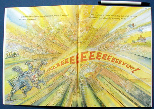 This contemporary retelling features Serafina Sow, whose mission in life is to bring waffles to the world. After building a highly successful wafflery, she retires to the Gulf of Pasta, leaving the family business in the hands of her capable offspring, Percy, Pete, and Prudence. The three operate the business and build themselves comfortable homes of straw, wood, and brick, of course. Enter Tempesto, a thugish, leather-jacketed wolf. He orders the three pigs to cook themselveshe isn't interested in waffles. Kellogg's usual busy, highly defined illustrations complement the humorous, clever text. In the satisfying, nonfatal ending, Serafina Sow returns from retirement to help her children defeat Tempesto, who has the meanness steamed out of him after coming down the chimney into the waffle iron. He is sent to the Gulf of Pasta in Serafina's place, where he spends his days as a mellow beach bum. A tempting choice to pair with Jon Scieszka's The True Story of the Three Little Pigs (Viking, 1989) and your favorite traditional version for porcine storytime fun.Lisa Falk, Palos Verdes Library, CA