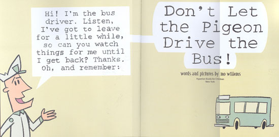 A brilliantly simple book that is absolutely true to life, as anyone who interacts with an obdurate three-year-old can attest. The bus driver has to leave for a while, and he makes one request of readers: "Don't let the pigeon drive the bus." It's the height of common sense, but the driver clearly knows this determined pigeon and readers do not-yet. "Hey, can I drive the bus?" asks the bird, at first all sweet reason, and then, having clearly been told no by readers, he begins his ever-escalating, increasingly silly bargaining. "I tell you what: I'll just steer," and "I never get to do anything," then "No fair! I bet your mom would let me." In a wonderfully expressive spread, the pigeon finally loses it, and, feathers flying and eyeballs popping, screams "LET ME DRIVE THE BUS!!!" in huge, scratchy, black-and-yellow capital letters. The driver returns, and the pigeon leaves in a funk-until he spies a huge tractor trailer, and dares to dream again. Like David Shannon's No, David (Scholastic, 1998), Pigeon is an unflinching and hilarious look at a child's potential for mischief. In a plain palette, with childishly elemental line drawings, Willems has captured the essence of unreasonableness in the very young. The genius of this book is that the very young will actually recognize themselves in it.