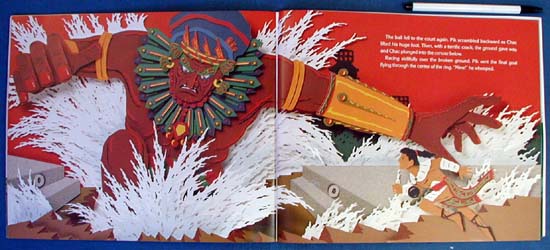The ancient Mayan belief that the future was divinely decreed and could not be changed is the basis for this original tale of a boy who must defeat the Rain God in a ball game to save his people from disaster. Mayan art and architecture were the inspiration for the spectacular cut-paper artwork.