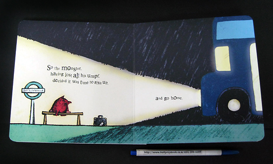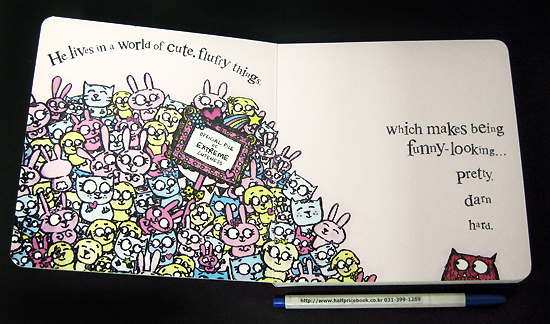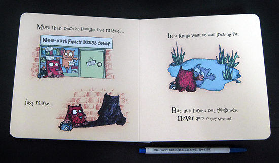 ¡¯Tis the season for all things monstrous - but not in Cutesville, ¡°Home of the Fluffy.¡± Bright¡¯s hairy, snaggle-toothed monster feels out of place amid the town¡¯s cutesy critters, so he packs his binoculars and guidebooks (The Rough Guide to the Big Wide World and Making Friends for Dummies, among others) and hits the road. Like the main characters in Mo Willems¡¯ Leonardo, the Terrible Monster (2005) and Tammi Sauer¡¯s Mostly Monsterly (2010), Monster¡¯s appearance doesn¡¯t match his sensitive disposition, and he yearns for someone to love him ¡°just the way he is.¡± Bright¡¯s rough-textured print technique - think degraded photocopy - suits our scruffy little hero to a T, while the bright, saturated color palette of reds and purples against pale and pretty backgrounds reflects his optimistic nature. The ending is disappointingly run-of-the-mill - after searching high and low, Monster¡¯s soul mate turns out to be a bus-driving girl monster who looks exactly like him - but the friendly, clever text and winsome illustrations make this book a decent seasonal addition to the bedtime stack.