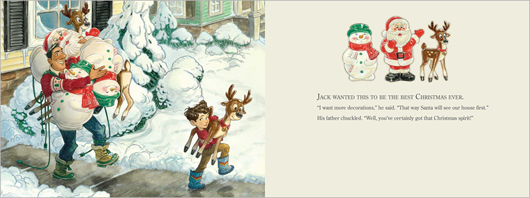 "Illustrations in colored pencil and gouache create the crowded full-page scenes of the wild indoor hullabaloo, and show Jack¡¯s changing emotions as he learns about the true spirit of Christmas." |