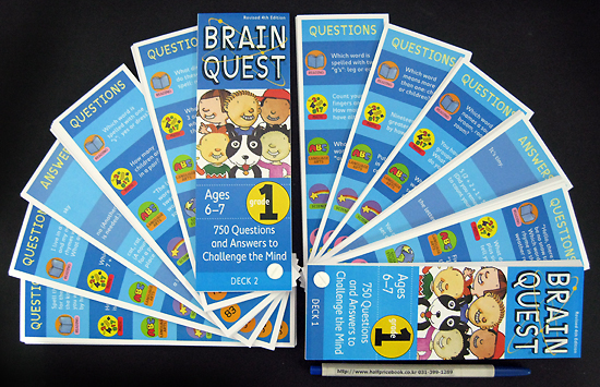 For the fourth edition every deck is thoroughly revised and includes 20 percent new material. The content aligns with national and state standards and is overseen by the Brain Quest Advisory Board, a panel of award-winning educators, each a recent state teacher-of-the-year award winner or a recipient of the prestigious Milken Educator Award. The covers and cards have a refreshed design, giving Brain Quest a cooler, updated look. |