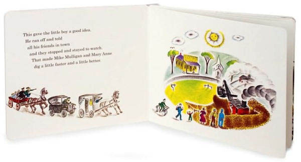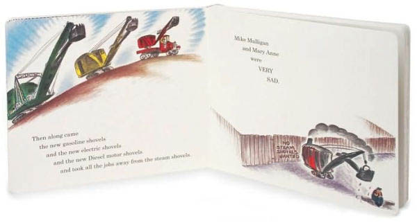 "This is fun both in its text and gay crayon drawings. Mike Mulligan remains faithful to his steam shovel, Mary Anne, against the threat of the new gas and Diesel-engine contraptions and digs his way to a surprising and happy ending." -- The New Yorker