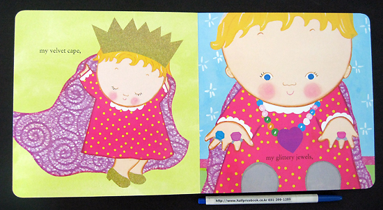 Poor baby, no one calls her by her real name! ¡°I am not a buttercup, or a giggly goose. I am not a cupcake. Please don¡¯t call me Little Lamb, and never ever Gum Drop,¡± she insists. With a curtsy and a twirl, again and again our protagonist makes it abundantly clear who she is. She wears a shiny crown, a fancy dress, sparkly shoes, a velvet cape, and glittery jewels.