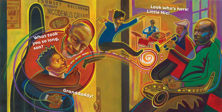 Nic is an aspiring musician whose life spans two different worlds--his suburban school where he wows his friends in orchestra, and the busy city streets of his home where he's jostled by the crowd. Nic makes his way home from a busy day at school with a double bass on his back, the symphony of his surroundings in his heart, and a sweet surprise for the reader at the end of his journey. This is a sweet, melodious picture book about how dedication, music, and family can overcome any obstacle.