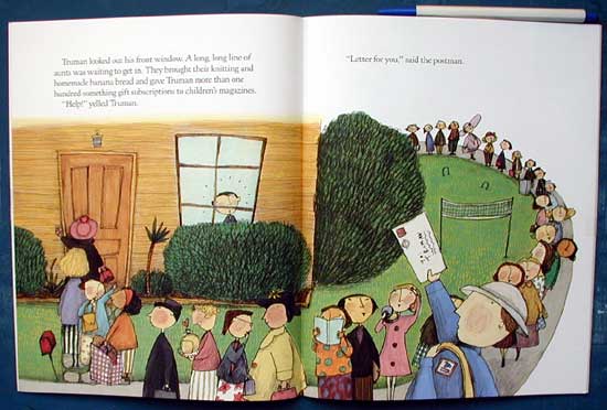 Truman's quirky Aunt Fran sends him a birthday present he always wanted-an ant farm. But instead of ants he gets aunts! They all fuss over Truman. Truman makes sure they eat well and get plenty of fresh air. Finally, he runs out of room, and finds new homes for all of the aunts. And then another package arrives for Truman-his very own, lovable Aunt Fran. The illustrations are as whimsical as the story.