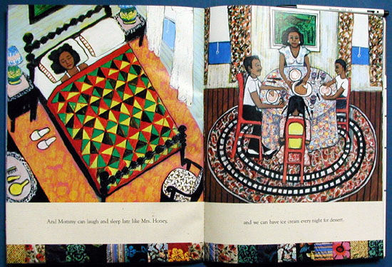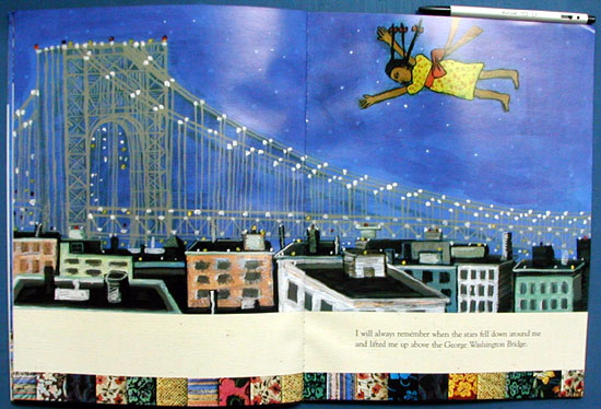 The book - originally created as a story quilt - recounts the dream adventures of eight-year-old Cassie, who flies above her apartment rooftop looking down on 1939 Harlem. A stunningly beautiful book.