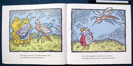 Hup, two, three, four! We're in the 25th Army Corps. Queen's count! Two, three! We are the marching infantry! Poor Joe! He wants to march in the parade, but every time the lines are uneven, he must stand aside. What's a poor bug to do? Joe is determined. He studies the problem, relining the twenty-five bugs in his squadron from two lines to three lines to four lines, until inspiration and fortitude result in five lines of five -- and Joe fits in the last.