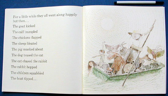Despite Mr. Gumpy's warnings to the multitudinous animals and children on his barge, the outing turns soggy when the boat capsizes.