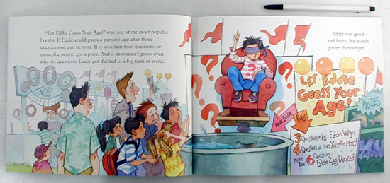 Mr. Shaw, Bayside School's principal, is retiring. A big carnival picnic has been planned in his honor. And one of the more popular game booths is Dunk Eddie. Is your age more or less? Let Eddie guess your age, and if he misses he gets dunked! Eddie's classmate, Clara, tries her luck but Eddie guesses her age. Other picnic participants test Eddie's math skills, but Eddie is just too good at counting and guessing their age. Clara, however, has a secret weapon. And the final surprise is who gets to dunk Eddie! Young readers will enjoy this rollicking, guessing math game that counts and compares whole numbers. Students will learn how much fun it is to guess and count whole numbers, even at a picnic. Parents will enjoy reading this story with their child(ren) as they practice counting numbers up and counting numbers down. In the For Adults and Kids section at the back of the book, there are various activities involving parents and their young reader(s) to demonstrate that math can be fun!