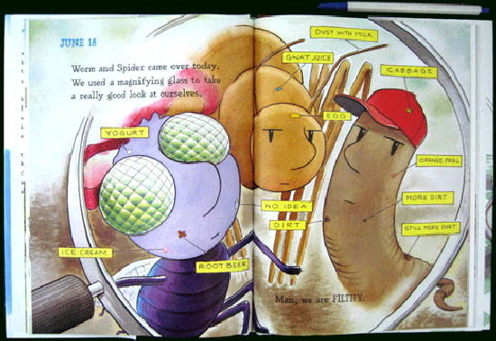 Fans of Diary of a Worm and Diary of a Spider will recognize the conventions behind the latest book from Doreen Cronin and Harry Bliss: a young bug keeps a journal of tiny triumphs and frustrations. The story is light on plot but teeming with funny vignettes that blur the line between entomology and early childhood. Diary of a Fly is also a wry reminder of how frustrating it can feel to be small¡¦