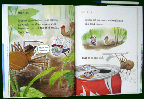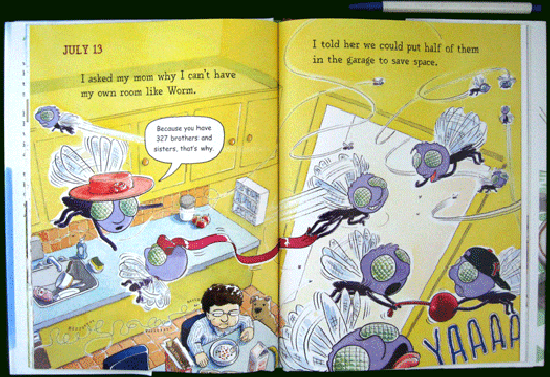 This is the diary...of a fly. A fly who, when she's not landing on your head or swimming in your soup, is trying to escape her 327 brothers and sisters who are driving her crazy!