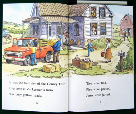 It is the day of the country fair and everyone is getting ready. The pies and jams have been carefully packed, and Wilbur is given a special buttermilk bath to make his skin shine. All of his friends want him to be special and win a prize so Mr. Zuckerman will keep him on the farm. With the help of Charlotte, who spins her web with words to describe how Wilbur fantastic is, and Templeton the rat, who scavenges for papers containing words that Charlotte can use, Wilbur is identified as "humble" but at the same time very proud to have such wonderful friends. The story, based on the recently released movie, has been adapted from the original book by E. B. White. A note to parents appears at the front to help them and the new reader get the most out of the book. A Level 2 book in the "I Can Read" series. |
