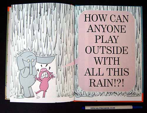 Gerald the elephant and his friend Piggie are outdoors and ready to play when a drop of rain falls ¡°PLINK!¡± on Piggie¡¯s head. Watching her high-spirited mood dive precipitously through annoyance toward despair, Gerald extends an ear to shelter her. Soon, though, two ecstatic worms cavorting in the rain inspire them to find happiness in wet-weather play. The characters quickly shifting moods provide plenty of laughs, as well as food for thought, in this amiable entry in the Elephant and Piggie beginning-reader series. Willems again combines simplicity and wit to create a child-pleasing text that works beautifully with the cartoon-style illustrations. |