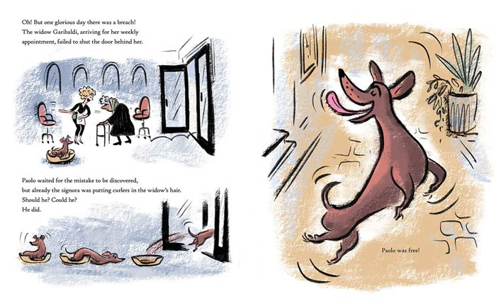 Paolo the dachshund is trapped. Though he lives in Rome, a city filled with history and adventure, he is confined to a hair salon. Paolo dreams of the sweet life--la dolce vita--in the Eternal City. And then, one day, he escapes! Paolo throws himself into the city, finding adventure at every turn. Join our hero as he discovers the wonders of Rome: the ruins, the food, the art, the opera, and--of course--the cats. Readers will cheer the daring of this bighearted dog, whose story shows that even the smallest among us can achieve great things.