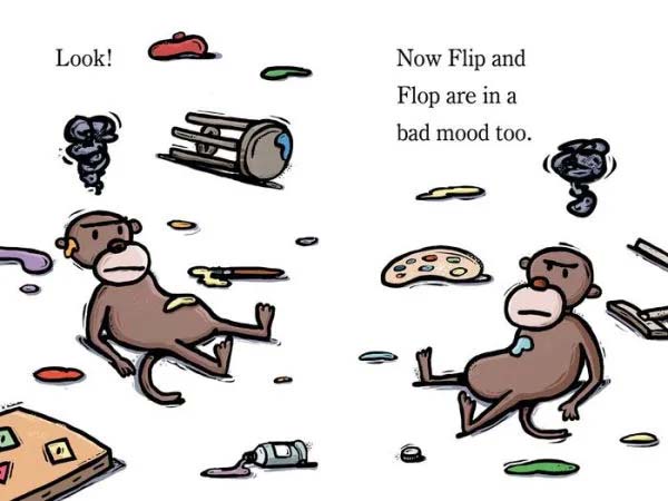 Milgrim has added to his award-winning series with an eventful and beautifully illustrated story that begins with an innocent greeting and ends with the calm after the storm. Otto (a robot) just wants to say hello to Olly (a rhino), but Olly is in a bad mood and has no time for pleasantries. Olly chases Otto through the pages and right into Flip and Flop (monkeys), who now have caught Olly's bad mood. Little do they know that a storm is brewing and they have to work together to escape the flashing lightning, dark skies, and heavy rain. Milgrim illustrates the familiar four on top of the hill gaping as the storm moves away. Readers will be delighted to see the bad moods dissipate along with the clouds. VERDICT The simple sentences, repetitive phrases, and supportive illustrations make this an excellent choice for beginning readers and a great addition to any library.
