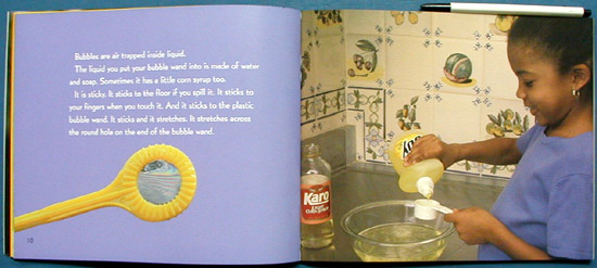 What are bubbles made of? Why are they round? Why do they always pop? Investigate the basic science of bubbles with an author who has a degree in chemistry. Vivid photographs and clear, simple text introduce young children to science and help answer questions about one of childhood's greatest joys. Bubbles are simply air trapped inside liquid. They are round because the air inside pushes out evenly against the liquid skin. Bubbles eventually pop because their liquid skin dries out and shrinks, making them unable to hold all the air inside. After learning about bubbles and seeing so many pictures of colorfully captured bubbles, it may be the perfect time to make your own. To do so, follow the bubble solution recipe at the back of the book. You probably have the ingredients in your cupboard. Then you can try some of the experiments that follow. For example, if you make a square shaped wand, will you get square shaped bubbles? All young scientists should give it a try. Part of the "Let's Read-and-Find-out About Science" series.