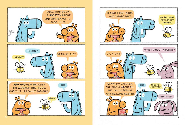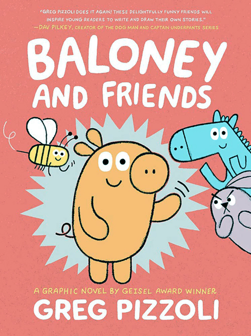 Meet Baloney] This book is about him. And also Peanut the horse, his best friend. There's Bizz the bumblebee, too, of course. And Krabbit. He'd rather not be here, but what can you do? In this graphic novel for young readers, watch our pig protagonist perform some questionable magic, cheer him on as he braves the swimming pool, and root for Baloney and his friends when a case of the blues gets him down. Brought to you by Geisel Medalist Greg Pizzoli, these delightful tales will get kids giggling in no time.
