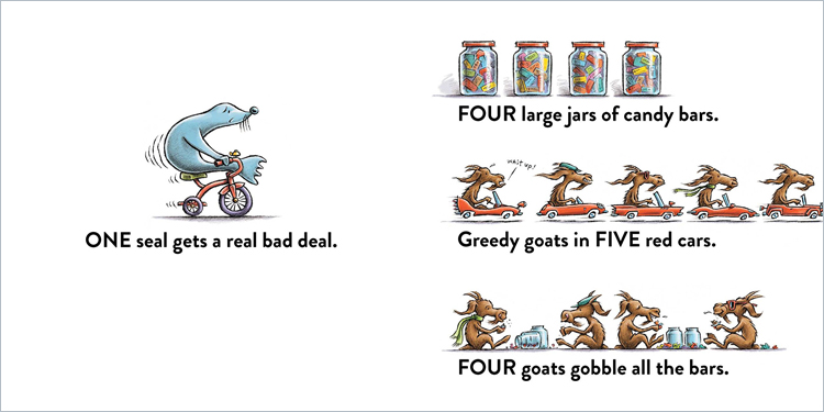 This seriously silly Classic Board Book with artwork by the New York Times bestselling illustrator of Goodnight, Goodnight Construction Site irresistibly combines the concepts of counting and sharing.