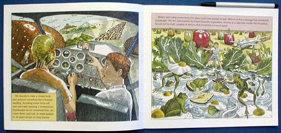 "With Henry as my co-pilot..." she visits the strange land of Chewandswallow -- a land characterized by massive amounts of food, immense carrots, leafy jungles of lettuce, and tuna fish sandwiches so gigantic they have to be moved by helicopter. What the people of Chewandswallow are doing with all that food is most intriguing of all. Fans of Cloudy With a Chance of Meatballs will applaud this return trip with its underlying message of generosity and a world community.