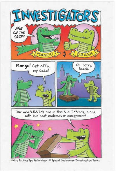 With their Very Exciting Spy Technology and their tried-and-true, toilet-based travel techniques, the InvestiGators are undercover and on the case! And on their first mission together, they have not one but two mysteries to solve! Can Mango and Brash uncover the clues, crack their cases, and corral the crooks--or will the criminals wriggle out of their grasp?