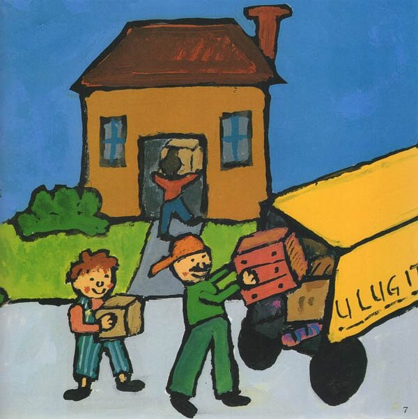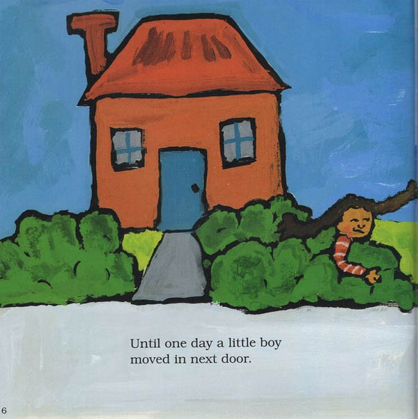 When a boy moves in next door, a young girl makes a friend. They play together happily until a fight over a toy results in the boy's stuffed rabbit's being damaged. The girl realizes it's not fun to play alone, and she has an idea that repairs both the rabbit and their friendship. The richly colored illustrations with strong black outlines are more effective than the somewhat flat text.