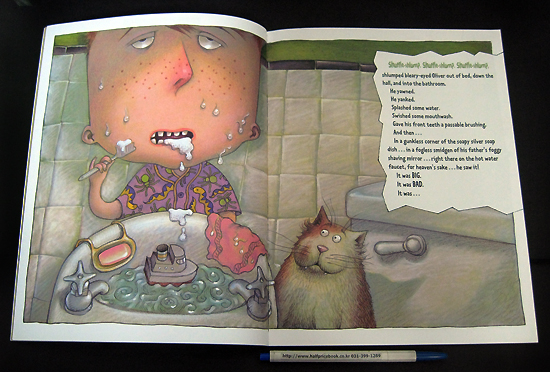 Big, bad, BEDHEAD! Oliver's hair is "way out of control." Hair is going every which way, and in the back there's a clump that looks just like a cat's coughed-up fur ball. Drastic measures are in order. Oliver's very helpful family pushes, pulls, waters, spritzes, mousses, and hair-pins the recalcitrant locks, all to no avail. Finally, they remember the one true answer to bedhead: a baseball cap. Off to school Oliver goes, everything fine and dandy until he makes a horrible discovery: today is class picture day, and hats are not allowed.