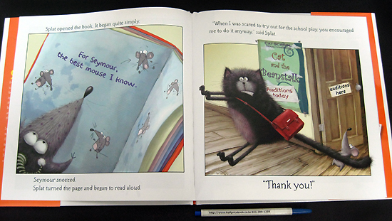Splat the Cat's trusty mouse friend, Seymour, needs cheering up, and Splat wants to help. He's been working on something special for Seymour—not just a thank-you card but a thank-you book! His book lists all the sweet and often hilarious reasons Splat is thankful for their friendship.