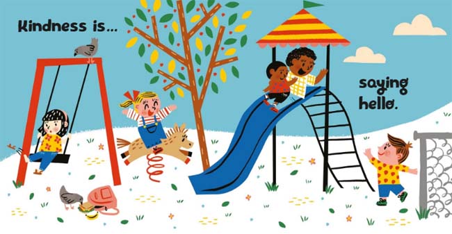 Kindness is a friendly hello. A roaring cheer. A quick boost. Kindness is what makes us strong! This joyful board book shows various children as they extend kindness in all kinds of situations: on the playground, at lunchtime, on a bike path, and on a neighborhood street. This sweet preschool read-aloud shows the way kindness helps build friendship and community.
