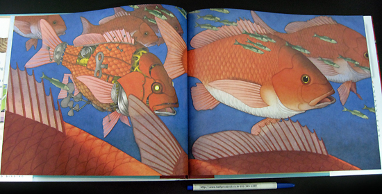 Two-time Caldecott winner Wiesner (Tuesday; The Three Pigs) crafts another wordless mystery, this one set on an ordinary beach and under an enchanted sea. A saucerlike fish's eye stares from the exact center of the dust jacket, and the fish's scarlet skin provides a knockout background color. First-timers might not notice what's reflected in its eye, but return visitors will: it's a boxy camera, drifting underwater with a school of slim green fish. In the opening panels, Wiesner pictures another close-up eye, this one belonging to a blond boy viewing a crab through a magnifying glass. Visual devices binoculars and a microscope in a plastic bag rest on a nearby beach towel, suggesting the boy's optical curiosity. After being tossed by a wave, the studious boy finds a barnacle-covered apparatus on the sand (evocatively labeled the "Melville Underwater Camera"). He removes its roll of film and, when he gets the results, readers see another close-up of his wide-open, astonished eye: the photos depict bizarre undersea scenes (nautilus shells with cutout windows, walking starfish-islands, octopi in their living room la Tuesday's frogs). A lesser fantasist would end the story here, but Wiesner provides a further surprise that connects the curious boy with others like him. Masterfully altering the pace with panel sequences and full-bleed spreads, he fills every inch of the pages with intricate, imaginative watercolor details. New details swim into focus with every rereading of this immensely satisfying excursion.