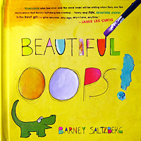 A pleasingly tactile exploration of the possibilities inherent in mistakes. "A torn piece of paper... is just the beginning!" Spills, folded paper, drips of paint, smudges and smears - they "all can make magic appear." An increasingly complex series of scenarios celebrates random accidents, encouraging artistic experimentation rather than discouragement. The folded-over paper can be a penguin's head; a torn piece of newsprint can turn into a smiling dog with a little application of paint; a hot-chocolate stain can become a bog for a frog. Thanks to a telescoping pop-up, a hole is filled with nearly limitless possibilities. The interactive elements work beautifully with the photo-collaged "mistakes," never overwhelming the intent with showiness. Saltzberg's trademark cartoon animals provide a sweetly childlike counterpoint to the artful scribbles and smears of gloppy paint. A festive invitation to creative liberation. |