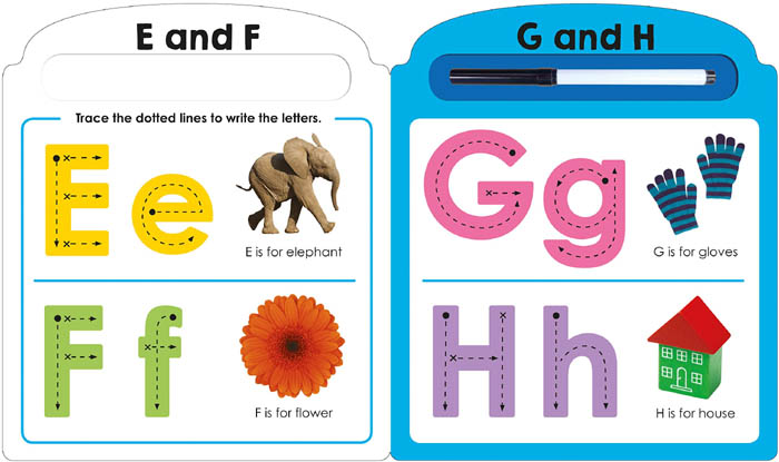 The simple instructions and activities increase in difficulty, encouraging young children to develop the skills needed for letter formation.