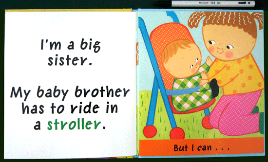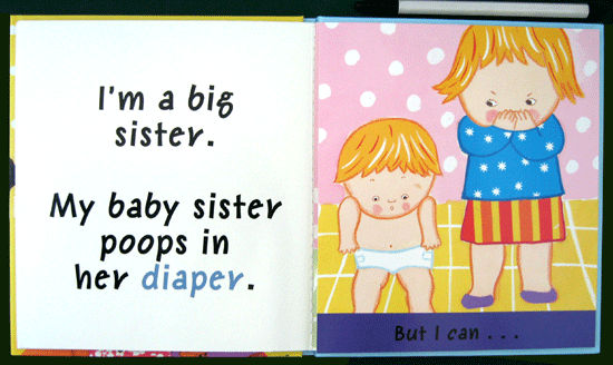 Babies sure have a lot of growing up to do! They can¡¯t eat with a fork, sleep in a real bed, poop on a potty, ride a trike, or read a book. On every sweet lift-the-flap spread, Karen Katz¡¯s illustrations celebrate the varied accomplishments of older siblings who may be in need of a little ego-stroking after a new baby¡¯s arrival! Each book ends on a warm, loving note with the older child reassuring the baby that "one day you¡¯ll be big like me." |