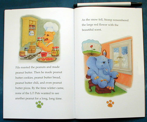 "Think happy thoughts," says Dr. Foxx to Stomp the Elephant as he removes three rose thorns from Stomp's aching trunk. Stomp closes his eyes and remembers the day he first discovered delicious peanuts growing in his yard! With a little help from his friends, he nurtures his peanut plants until they're the biggest and best-tasting in all of Healy Fields. |