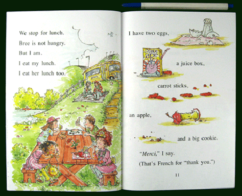 This book is sure to boost the vocabulary of the reader, not only because the author uses "big words" that are carefully explained, but also because the book is so entertaining that children are sure to read it avidly and repeatedly. Fancy Nancy is a cute and compelling character who faces the kinds of troubles that young readers can identify with: anticipating a fun field trip, overeating and stomachaches, and finding their own identity through new experiences. Nancy is a fun and unique character, yet she still manages to personify the life of every child so that readers will find themselves in her books. Teachers, parents and caregivers will also like the "Fancy Nancy" books in part due to the Fancy Nancy's section of "Fancy Words," which contains definitions for words such as beret, lavender, observant, portrait, and spectacular. Fancy Nancy stars in a series of books, so readers who love this title can easily find more great books to read. |