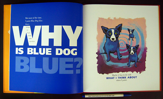 Cajun artist George Rodrigue first painted his distinctive, blueberry-colored pooch in 1984. Since then, Blue Dog has become a pop icon, the subject of several books by the author and many canvasses loved by both celebrities and the story-hour set, the audience for this picture book. Here, Rodrigue answers the title question by explaining that Blue Dog's color depends on what the artist is doing: when Rodrigue goes fishing, he paints the dog a salmon color; when Rodrigue wants a hot dog, he paints the dog mustard yellow, and so on. The text seems mostly a vehicle for introducing colors that belong in an upscale clothing catalogue (alabaster, emerald), and an unsatisfying quasi-cosmic remark finally answers the title question. Despite the problems, young Blue Dog fans will enjoy seeing their favorite pup dressed in different colors, and Rodrigue's liberating reminder that "Artists don't have to paint things the way they really are" may inspire kids to discover new colors and use them creatively. |