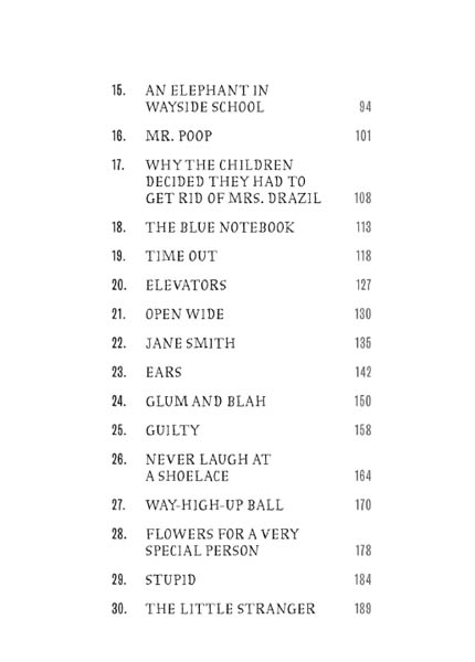 Hooray! Wayside School is Open Again! All the kids from Wayside School had to spend 243 days in horrible schools while Wayside closed to get rid of the cows (Don't ask!). Now the kids are back and the fun begins again on every floor. Miss Much has prepared a Day on the 30th floor--with dogs and cats and frogs and skunks and pigs, and an orange named Fido causing a terrible commotion. In Mrs. Drazil's class, they're throwing a coffeepot, a sack of potatoes, a pencil sharpener, and a light bulb out the window to see which hits the ground first. But the big surprise is that Mrs. Jewls is expecting a baby--but one named Cootie Face or Bucket Head--and a substitute teacher is coming--and everyone knows what that means... Something strange is going on at the already peculiar Way side School, when Mrs. Jewls leaves her students with a succession of substitute teachers.