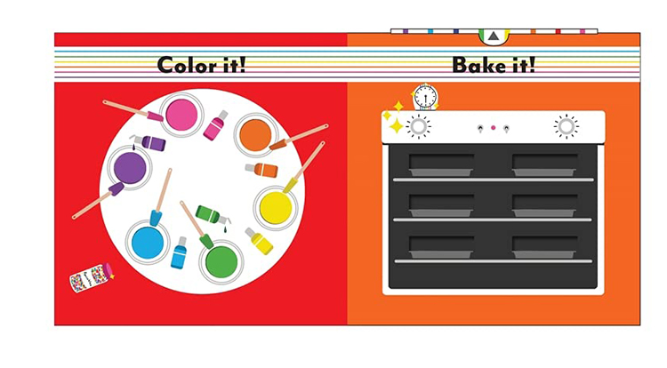 "With tons of exclamation points and super-bright colors, Bake a Rainbow Cake! is a wonderful sensory explosion."