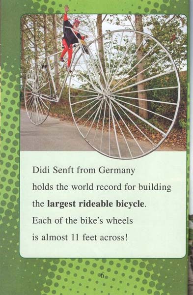 Buckle up! The Guinness World Record holders in Wacky Wheels cover all the vehicles that roll along. From the largest monster truck to the loudest bike horn, these Guinness World Records will rev the engines of imagination. Simple text and full-color photos will make learning about exciting topics fun for beginning readers.