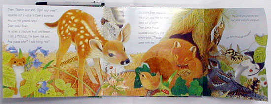 Little Deer and his helpful mouse friend encounter chipmunks, insects, spiders, rabbits, lizards, snakes, and birds on this nature trail adventure. Each page is filled with Maurice Pledger's beautifully detailed illustrations, and includes a variety of touch-and-feel textures and a lift-the-flap, pop-up surprise. Small children can easily relate to the endearing animal characters, and this book teaches them about the importance of camouflage and why certain animals hide themselves in the woods. Questions on each page for children to answer reinforce what they've just learned or direct them to pick out certain elements in each picture. Like other titles in Maurice Pledger's Nature Trails series, Hiding in the Woods stimulates a child's curiosity about the natural world.