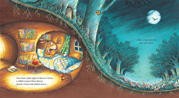 One dark, dark night in Burrow Down, a rabbit named Eliza Brown found a book and settled down...when a Snatchabook flew into town.